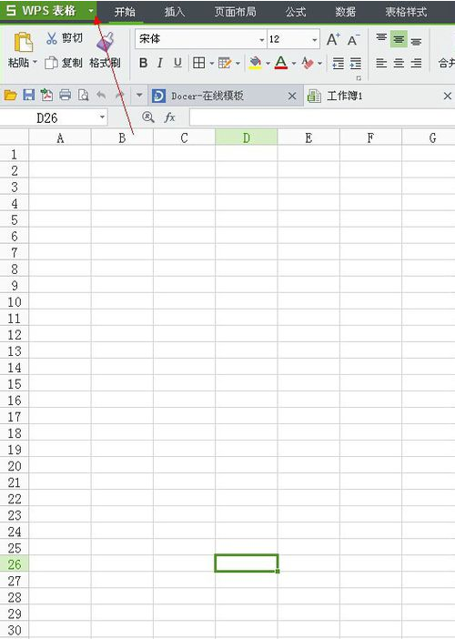 然后,在表格编辑窗口中找到左上角找到“WPS表格”图标后面的倒三角形。