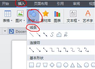 2.选择“插入”——形状——直线。