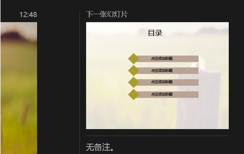 4.在右边我们可以查看下一张幻灯片,在下面的备注里面,我们可以添加我们在答辩时需要的信息,这些信息只有我们能看到,而不会被观众看到啦。 5.在幻灯片的工具使用方面,和正常的放映模式基本上是一样的,我们使用鼠标点击就可以啦,大家赶快试试这个吧。