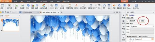 “替换”,如果要替换背景音乐,则在此页重新添加背景音乐,在弹出对话框选择替换;如果要替换声音,则在自定义动画效果栏中删除之前的再添加,如下图,否则会播放重复。“删除”,选中要删除的音乐小喇叭,按键盘上取消键就可以进行删除。
